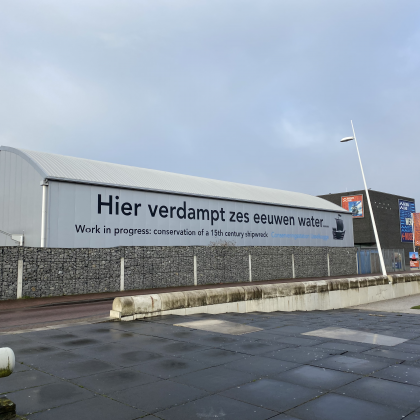 Conserveren betekent langer houdbaar maken. Dat kan op verschillende manieren. Laura Koehler, Scheepsarcheologe en Specialist maritieme materialen en Gert Schreurs, Veldtechnicus en Materiaalspecialist van Batavialand, hebben in overleg met binnen- en buitenlandse collega’s onderzoek gedaan naar de juiste conserveringsmethode voor de IJsselkogge en de bijbehorende losse onderdelen. Laura: “Uit onderzoek bleek dat de IJsselkogge een harde kern en een zacht oppervlak heeft. Daarom moet het hout langzaam van binnen naar buiten te drogen om scheuren te voorkomen. Dit doen we door het hout te besproeien met PEG (Polyethyleenglycol). Dat is een wasachtige substantie die de plaats van het water in de buitenste houtcellen overneemt en ervoor zorgt dat het hout minder gaat scheuren en krimpen. In de laatste fase van het conserveringsproces gaan we de kogge langzaam drogen door de temperatuur te verhogen en tegelijkertijd de bevochtiging te verminderen. Juist die geleidelijke droging is van groot belang. Als het hout te snel droogt gaat het vervormen. Over ongeveer twee jaar is het conserveringsproces klaar en kan de IJsselkogge geëxposeerd worden voor het grote publiek.”