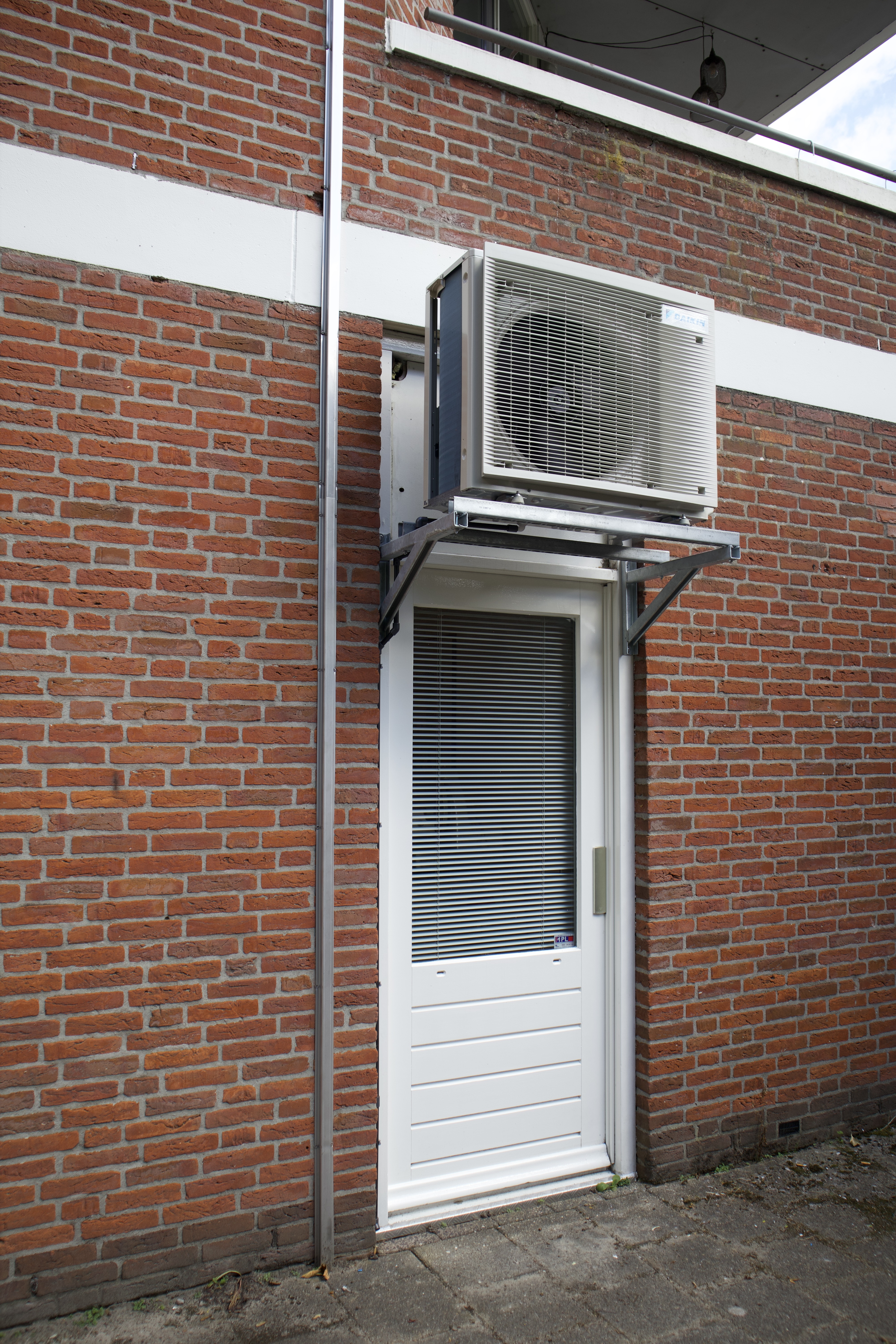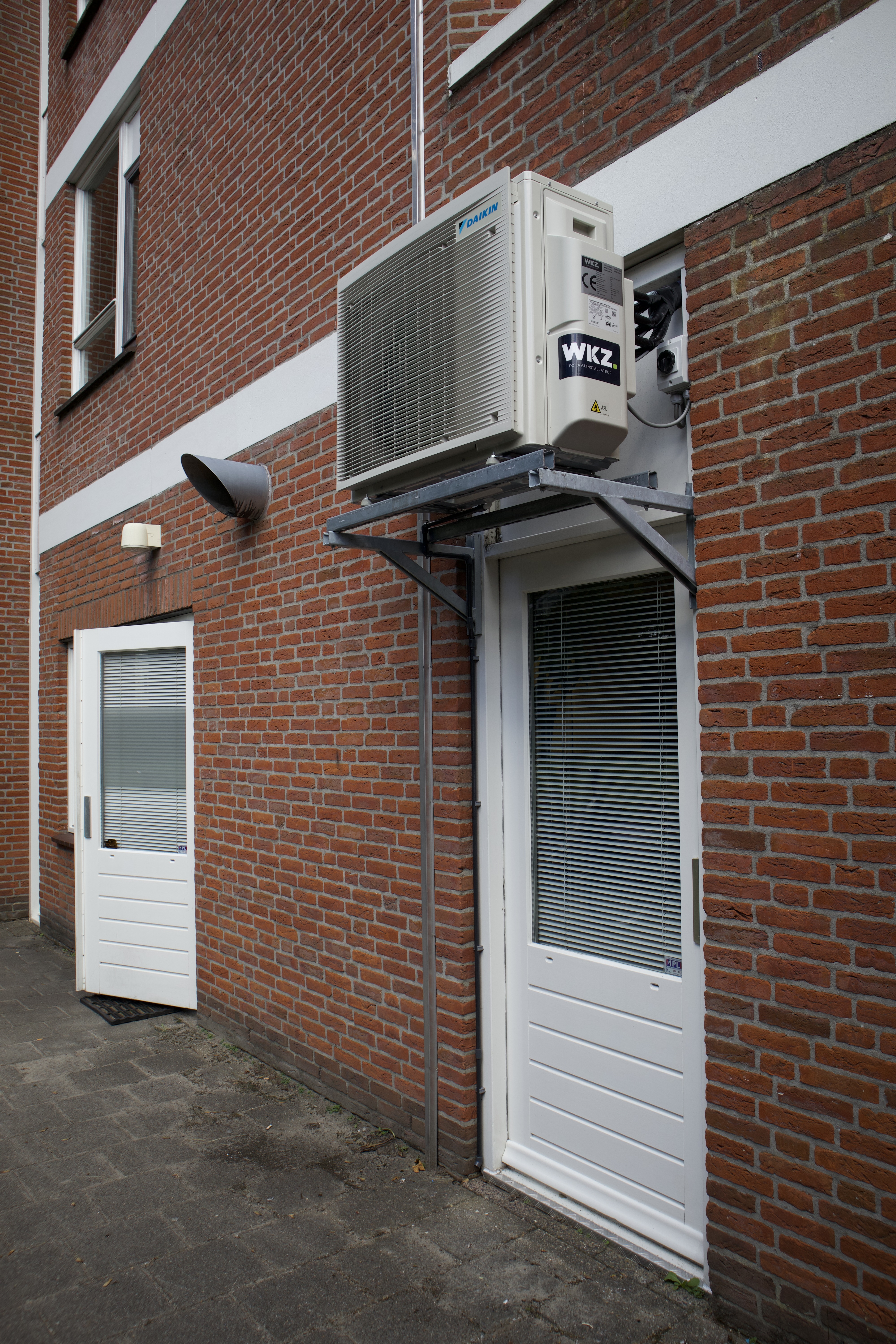 Belangrijk bij dit project was, de juiste plek voor het buitendeel. De vorige airco-installatie hing boven de toegangsdeur, op een plek waar ook rekening moest worden gehouden met het kozijn én de bovenliggende appartementen. Daarom koos WKZ voor een buitenunit op een beugel met een specifieke afmeting die perfect paste binnen de beschikbare ruimte. De beugel werd op maat gemaakt om de unit veilig en esthetisch te monteren. Door op dezelfde locatie te werken, werd bovendien overlast voor de bewoners tot een minimum beperkt.